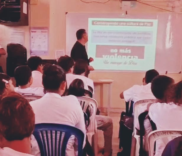 En la escuela en el Liceo Ricardo Fernandez Guardia, los Promotores de Paz de la Organización No más Violencia, un